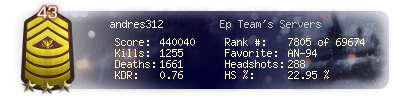 | Kills | 1255 | Deaths | 1661 | Kill / Death | 0.76 |