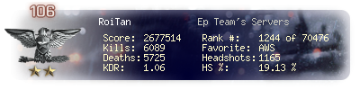 | Kills | 6089 | Deaths | 5725 | Kill / Death | 1.06 |