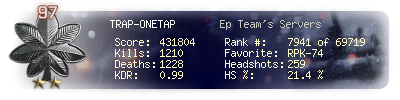 | Kills | 6222 | Deaths | 4671 | Kill / Death | 1.33 |