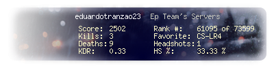| Headshots | 1 | Suicides | 0 | Headshot / Kill | 33.33 % |