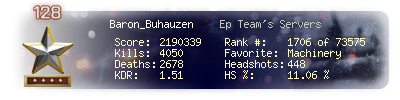 | Headshots | 448 | Suicides | 27 | Headshot / Kill | 11.06 % |