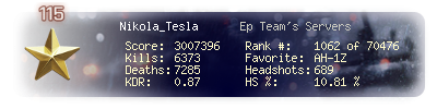 | Headshots | 515 | Suicides | 592 | Headshot / Kill | 9.14 % |