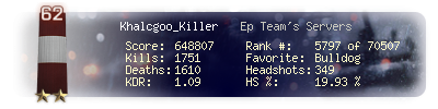 | Kill-streak | 10 | Death-streak | 6 | Team Kills | 0 |