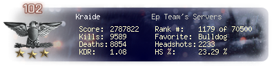 | Kills | 9589 | Deaths | 8854 | Kill / Death | 1.08 |