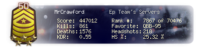 | Kills | 861 | Deaths | 1576 | Kill / Death | 0.55 |