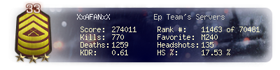 | Kill-streak | 6 | Death-streak | 29 | Team Kills | 0 |