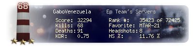 | Headshots | 8 | Suicides | 1 | Headshot / Kill | 11.76 % |