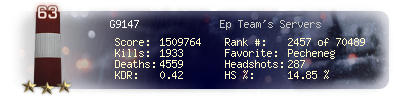 | Kills | 1933 | Deaths | 4559 | Kill / Death | 0.42 |