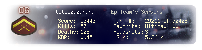 | Kill-streak | 4 | Death-streak | 13 | Team Kills | 0 |