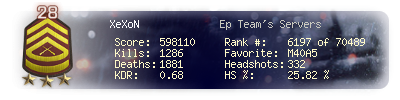 | Headshots | 299 | Suicides | 7 | Headshot / Kill | 26.79 % |