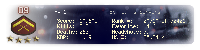 | Kill-streak | 6 | Death-streak | 8 | Team Kills | 0 |