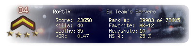 | Headshots | 10 | Suicides | 0 | Headshot / Kill | 25 % |