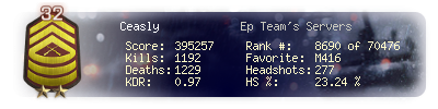| Headshots | 277 | Suicides | 8 | Headshot / Kill | 23.24 % |