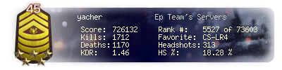 | Headshots | 294 | Suicides | 12 | Headshot / Kill | 17.51 % |