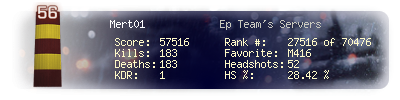 | Headshots | 52 | Suicides | 3 | Headshot / Kill | 28.42 % |