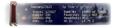 | Kills | 240 | Deaths | 454 | Kill / Death | 0.53 |