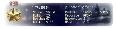 | Kills | 25 | Deaths | 67 | Kill / Death | 0.37 |