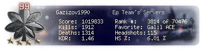 | Kills | 1912 | Deaths | 1314 | Kill / Death | 1.46 |