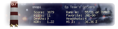 | Headshots | 4 | Suicides | 0 | Headshot / Kill | 36.36 % |