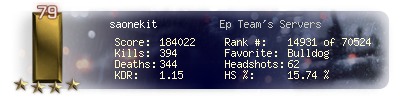 | Headshots | 29 | Suicides | 5 | Headshot / Kill | 13 % |