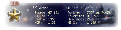 | Kills | 1712 | Deaths | 1300 | Kill / Death | 1.32 |