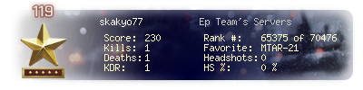 | Kill-streak | 6 | Death-streak | 6 | Team Kills | 0 |