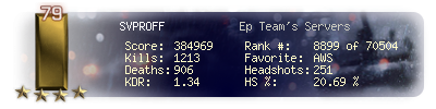 | Headshots | 251 | Suicides | 8 | Headshot / Kill | 20.69 % |