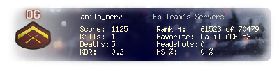 | Kill-streak | 1 | Death-streak | 6 | Team Kills | 0 |