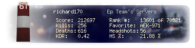 | Kills | 256 | Deaths | 616 | Kill / Death | 0.42 |