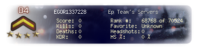 | Headshots | 0 | Suicides | 0 | Headshot / Kill | 0 % |