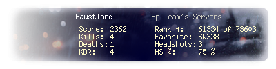 | Headshots | 3 | Suicides | 0 | Headshot / Kill | 75 % |