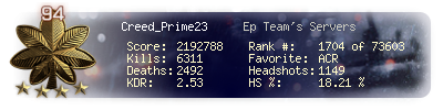 | Kills | 8537 | Deaths | 3522 | Kill / Death | 2.42 |