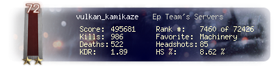 | Headshots | 85 | Suicides | 35 | Headshot / Kill | 8.59 % |