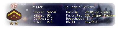 | Kills | 96 | Deaths | 240 | Kill / Death | 0.4 |