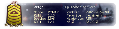 | Kills | 3836 | Deaths | 2752 | Kill / Death | 1.39 |