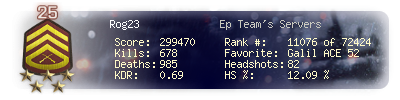 | Kill-streak | 10 | Death-streak | 20 | Team Kills | 0 |