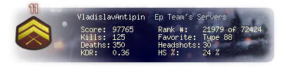 | Kills | 125 | Deaths | 350 | Kill / Death | 0.36 |