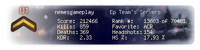 | Headshots | 154 | Suicides | 4 | Headshot / Kill | 17.93 % |