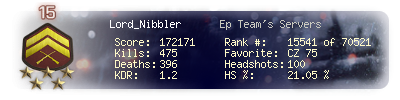| Headshots | 91 | Suicides | 5 | Headshot / Kill | 20.5 % |