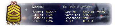 | Headshots | 387 | Suicides | 34 | Headshot / Kill | 17.58 % |
