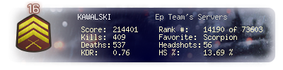 | Kills | 409 | Deaths | 537 | Kill / Death | 0.76 |