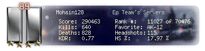 | Kills | 640 | Deaths | 828 | Kill / Death | 0.77 |