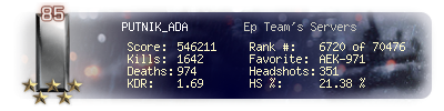 | Kills | 1642 | Deaths | 974 | Kill / Death | 1.69 |