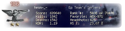 | Kill-streak | 5 | Death-streak | 5 | Team Kills | 0 |