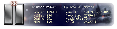 | Kill-streak | 10 | Death-streak | 6 | Team Kills | 0 |