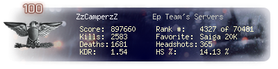 | Kills | 2583 | Deaths | 1681 | Kill / Death | 1.54 |