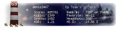 | Headshots | 260 | Suicides | 5 | Headshot / Kill | 19.86 % |
