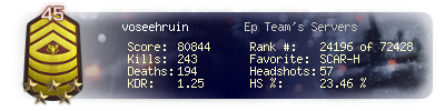 | Kills | 243 | Deaths | 194 | Kill / Death | 1.25 |