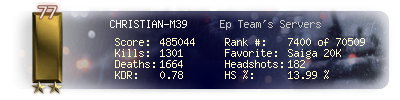 | Kills | 1301 | Deaths | 1664 | Kill / Death | 0.78 |
