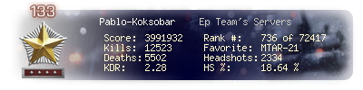 | Headshots | 25 | Suicides | 1 | Headshot / Kill | 14.79 % |